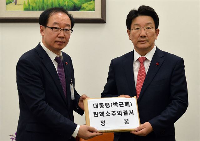 권성동은 2016년 6월 13일 국회 법제사법위원회 위원장으로 선출되었습니다. 이해 가을 최순실 국정농단 사태가 터지고 12월 3일 박근혜의 탄핵소추안이 국회에서 가결되었습니다. 국제 법제사법위원장이었던 권성동이 소추위원이 되었습니다.